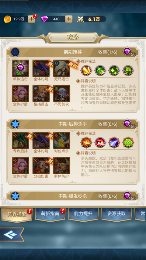 5、点击主城有一个攻略,点击攻略可查看阵容以及进阶玩法攻略