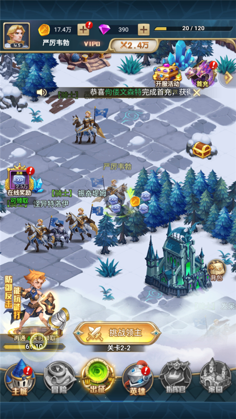 2、七日登录,登录两天领取群攻辅助花之精灵,登录七天可领核心英雄光辉骑士