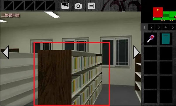 6、右转,靠近前方的书柜,发现一排绿色书,也有一些图案(随机),然后点击开始解谜。