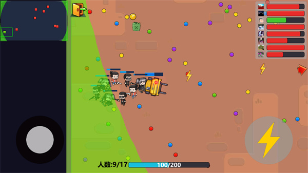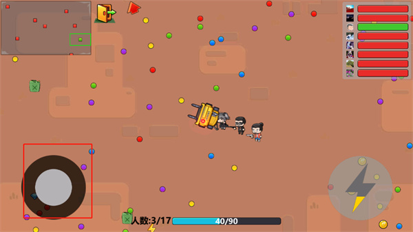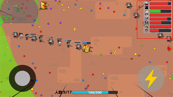 贪吃战车游戏的过程中玩家需要通过驾驶战车在战场上游走,并不断的扩大队伍的规模,增加人员的加入让自己的队伍的火力能变得更加猛烈,其中还有很多的武器装备可以通过提升等级来获取更多的伤害增幅,灵活的操控战车在这个混乱的战场上吞噬能量干掉其他的敌人,让自己一家独大!