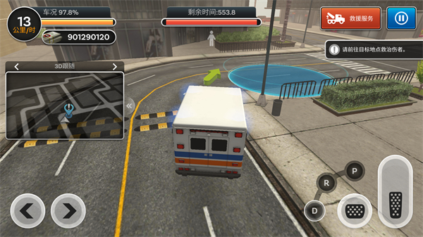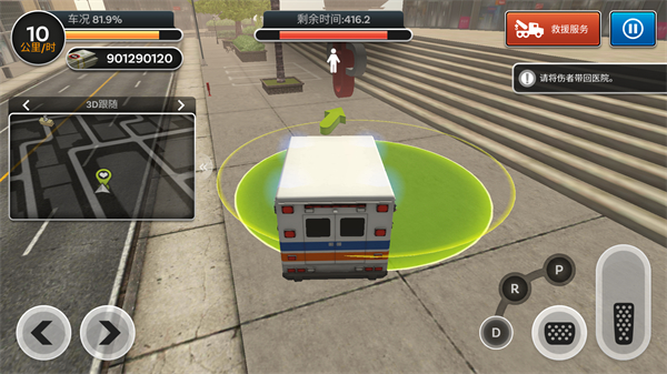 6、救治结束后将伤员带回医院即可完成任务,注意观察上侧的剩余时间,需要在有限时间内完成任务哦!