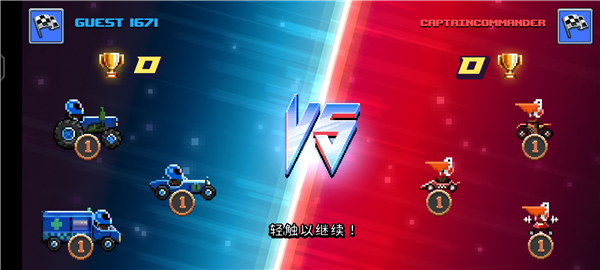 2、游戏的规则比较简单,只要玩家将对方的赛车撞击得系统提示赛车被损坏了,则玩家就是挑战优胜者。