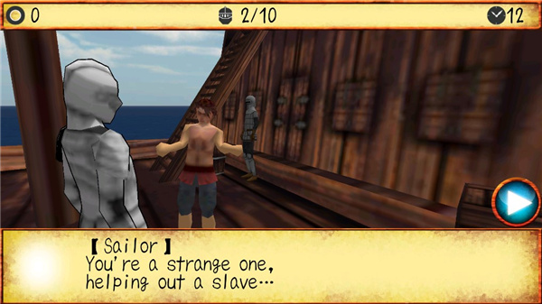 4、接下来是你与水手的对话,点击播放键继续;