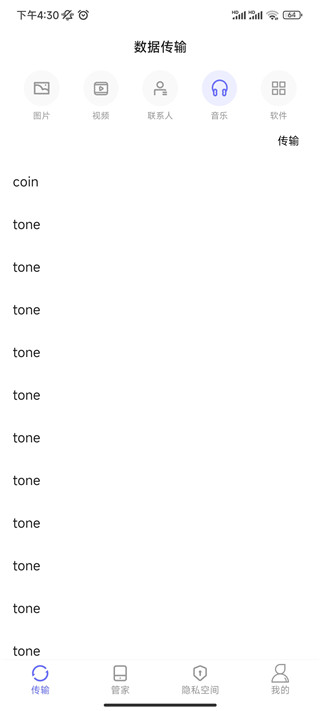 2、并且软件会自动同步你手机里数据,音乐、软件都可以进行传输;