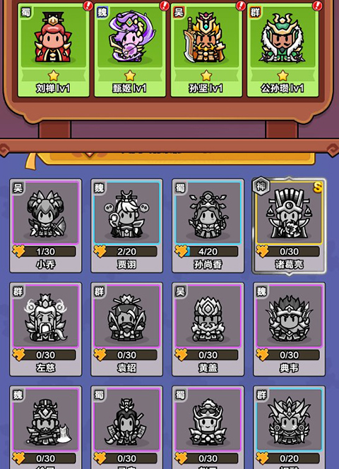 1、游戏内武将一共有魏、蜀、吴、群四种阵营类型,玩家可以根据阵营进行搭配上阵。