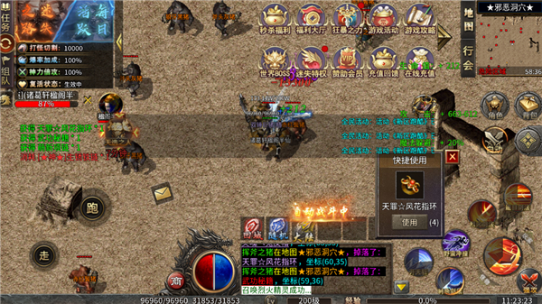 王者之战官方最新版是一款散人传奇迷失超变版手游,各种首爆奖励,装备回收,可获得海量迷失币,爽到飞起!所有装备、材料、货币都能爆出,一切看脸 打造生态好服,所有材料,货币,交易行都可玩家自主交易,剑匣宝盒、星象盘、天魔神决、星辰神决,各种功能非常强大!100%攻速加成轻松完成各种地图任务,完成任务获得元宝以真充卡,上线即可跑图刷怪掉装备。内置多章节任务,完成相应任务即可领取丰厚奖励,还会不定期上线各自新活动!