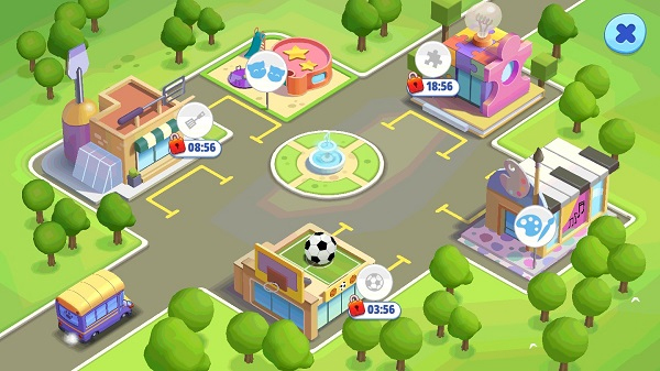 最后,游戏内置了的等级升级系统,每次帮助成员们完成活动项目后便可获得经验,这时会解锁公交车,坐上公交,便能前往商店中购买。