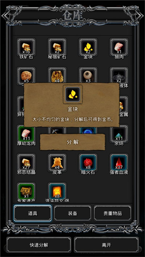 在“城堡”选项中的“大发明家”中只要提交一定数量的材料给他,即可获得金块,分解金块即可获得金币,想要获得更多金币还是要勤劳多去杀怪。
