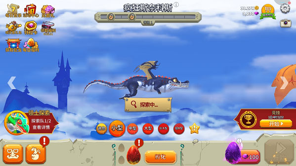 3、选择完毕后,所选的龙即开始探索,探索中的龙无法在游戏中使用。探索队最多两条龙,其中第二条龙需要观看激励视频才可增派。