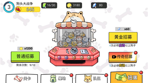 6、另外,点击扭蛋系统,提供了三种招募方式可帮助你高品质狗子噢
