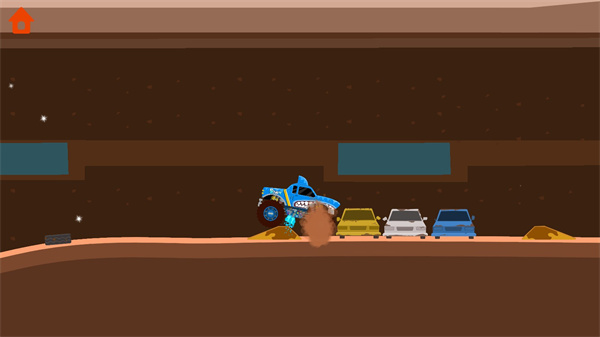 5、驾驶大脚车穿越赛道,熟练使用方向盘、油门、刹车等,达到指定地点。