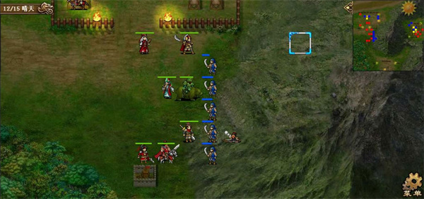 第五六七回合,许褚小分队得到强行后奔袭乌巢,其余人解决长枪队,站位上要有意识的往左上挪,这里第六回合许褚本可以更上去一格提前触发乌巢剧情,但为了主力准备的更加充分还是晚一回合触发。第七回合触发奇袭乌巢剧情后,淳于琼会减防,正面敌军除袁绍大本营本部外都会出击,故第七回合末让吕布往山上靠,吸引山上的敌军往左侧跑,千万不要让他们去增援乌巢了。