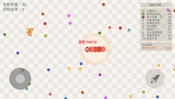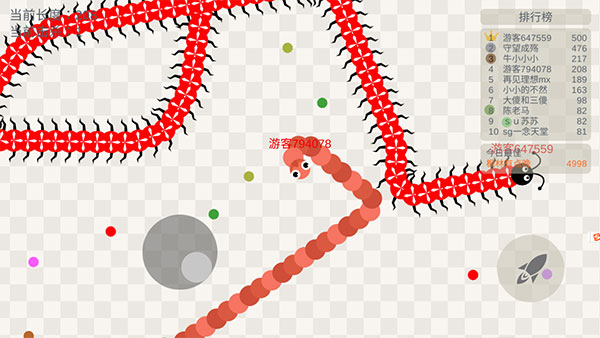 3、也可以长按加速键,用巧妙的走位让蛇身被别人撞上,就可以吃掉尸体迅速变长