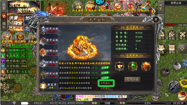 1、点击洪荒血脉、剧情任务可查看主线任务。