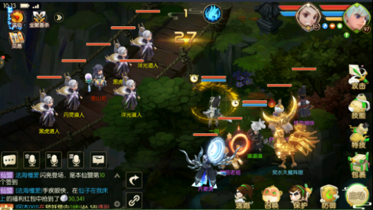 4、嵩山君:这关的特殊机制是嵩山君受到物理伤害回血,嵩山神魂受到法术伤害回血,所以开始千万不要使用群体技能,在其中—个小怪被击杀后该机制就会消失,这时候就可以全力输出了
