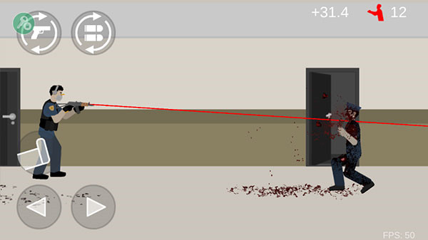 3、进入游戏后,左边控制方向,右边点击控制射击,上方还可以切换枪械、换弹等