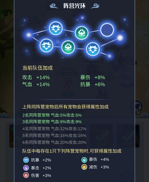 4、除了克制,还有光环属性,玩家可以激活阵营光环,增加额外属性。