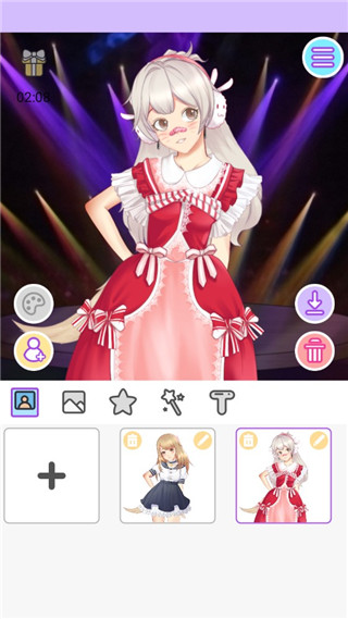 2、操作画面暖心、简洁,可拖动,可删除,可调色,可全屏,还可一键初始化,简单快捷的进行化妆和装扮