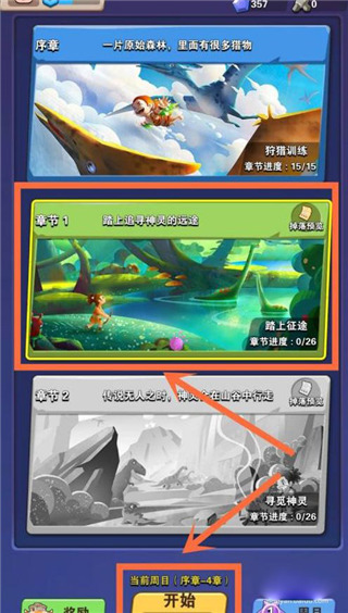 3、接着,选择要进行冒险的章节,并点击下方的开始进入。