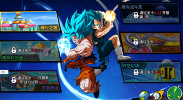 玩家进入游戏后获得贝吉塔·超蓝可在背包内使用,使用后可在战斗中上阵,给角色升级后可以轻松渡过游戏前期。