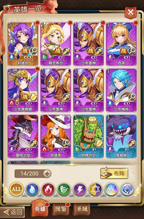 3、玩家可以在英雄页面查看自己已获得的英雄,也可以点击图鉴查看其他未拥有的英雄。