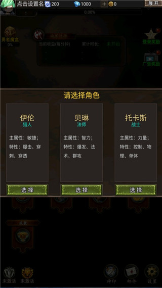 1、下载进入勇者传说英雄军团游戏,选择你的角色开始挑战;