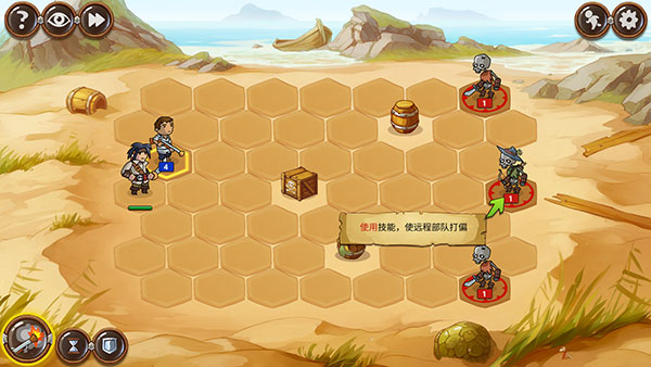 勇者大陆海盗还特别加入了技能机制。这就使得游戏中的兵种和主角都有自己独特的技能,喜欢战棋的玩家们往往会花费大量的精力来研究每场战斗如何做到零损伤,以最小的代价赢得胜利。哪怕他们已经通过该战斗,但是他们还是会不厌其烦的一次次挑战,直到研究出认为最完美的过关方法。