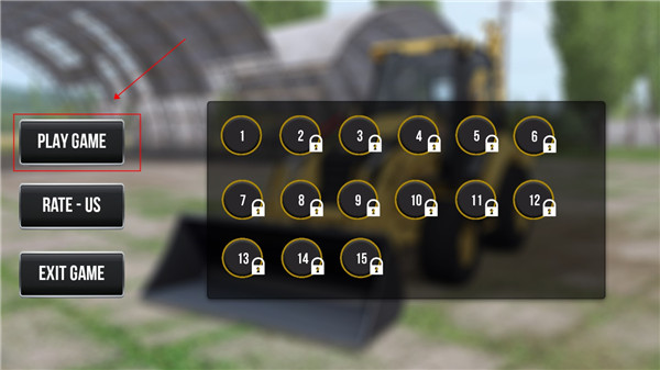 1、打开推土机模拟器游戏后,点击第一个图标选择关卡。