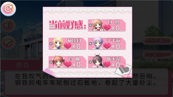 1、游戏中你将与五位女主角发生剧情,通过合理的对话选择,就可以获得对应女主角的好感度。