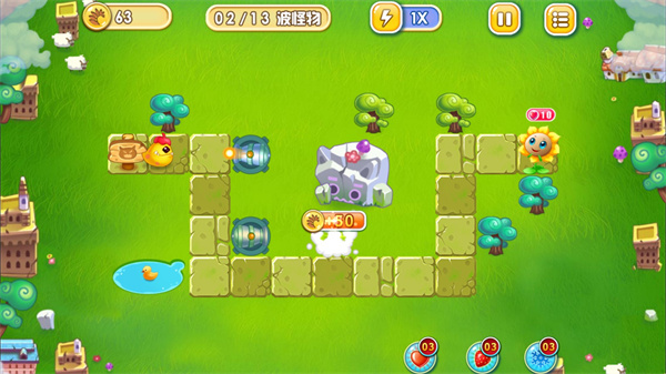 游戏基本玩法简单易上手,通过摆放炮塔即可消灭怪物,保护花儿不受破坏。这么简单的游戏方式也正是游戏的困难之处,如何让花儿不受任何伤害;如何赚取更多金币,建造更多炮塔;每个炮塔所布局的位置……难易结合,让不同类型的玩家都能够融入到游戏中。