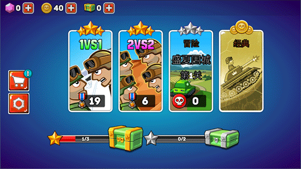 1、进入游戏后,你可以任意选择1v1、2v2、冒险和经典模式;