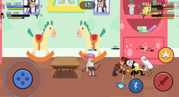 6、但战场中不止战斗,您能在游戏中处处感受到欢乐与可爱。在这里您可以在皮皮球、滑索上唱跳、开火等操作,也可以二段跳躲过敌人的精准射击;你可以套上泳圈在水中与别人钢枪;在被击倒后,您将变成哭嘤嘤的小肠肠。您也可以靠着加油动作扶起倒在地上的队友。