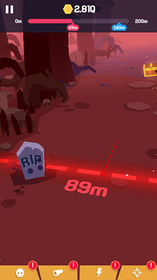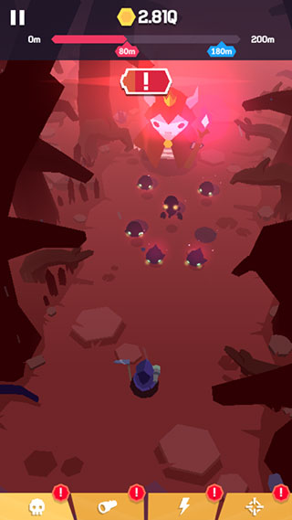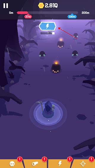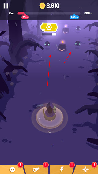 6、我们要做的就是消灭图中所有怪物,让自己走的更远,当被怪物碰到时,也就意味着游戏结束,这时候会结算你冒险的距离