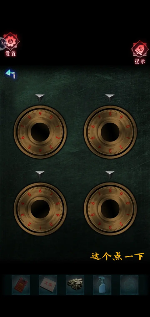 使用螺丝刀打开抽屉,找到清洁液。点击地上的纸张,发现保险柜的密码顺序是9869。
