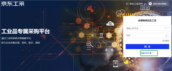 1、前往京东工采网站首页,点击客服协助开通。
