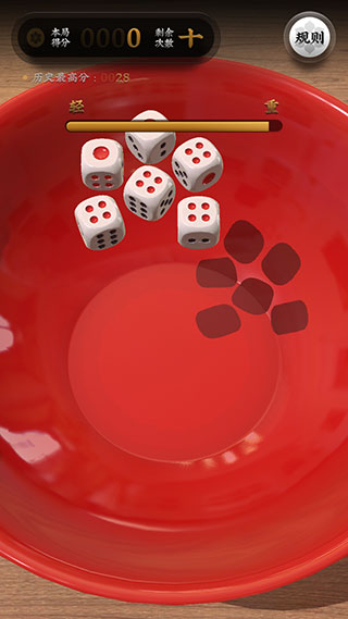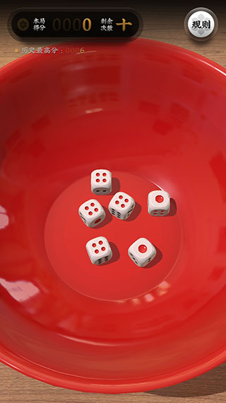 1、进入游戏之后,我们可以看到六颗骰子和一个碗。