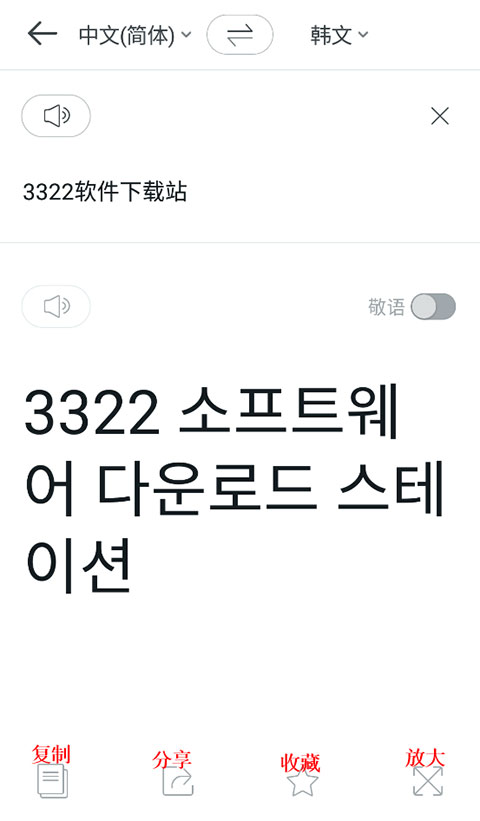 3、然后编辑你想翻译的中文,下方就会出现对应的韩文,还支持语音哦!