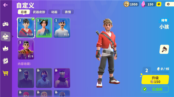 收集与升级 游戏中有丰富的角色造型和武器皮肤等待解锁,提升等级还能改善外观。快来打造属于你的忍者装备吧!