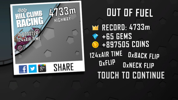 登山赛车中吉普车是新手送的,这款车性能很渣。用它一遍一遍的跑田园地图或者你受不了了直接下载无限金币版吧,直到攒够金币买下一辆车,就是越野摩托车了,越野摩托车的性能各种狂飙,足够玩儿很长一阵子了。