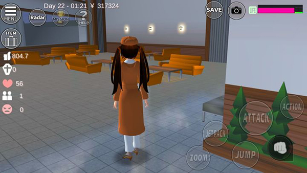 1、3D二次元的画面打造,所有的场景都非常真实,玩家将控制一个女高中生开始游戏。