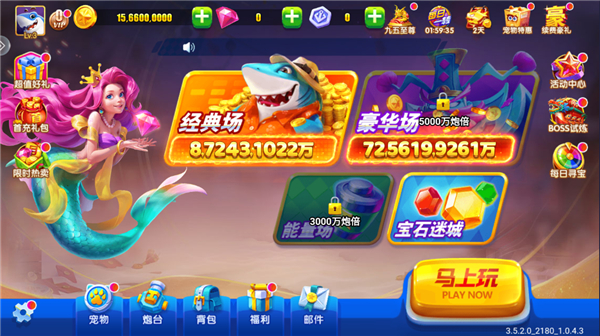 波克捕鱼官方版是一款福利非常高的捕鱼手游。波克捕鱼游戏中提供经典场、豪华场、能量场、宝石迷城4种模式,每一种模式下又有不一样的场景玩法、鱼种,玩家可根据需求选择。3D游戏画面,炫酷的捕鱼打击特效,众多技能帮助玩家捕获高额鱼种,内置宠物、炮台、炮台翅膀特色系统,不同宠物、炮台、炮台翅膀有着不同属性,搭配它们可以让你技能效果更久,捕鱼获得额外金币等等。