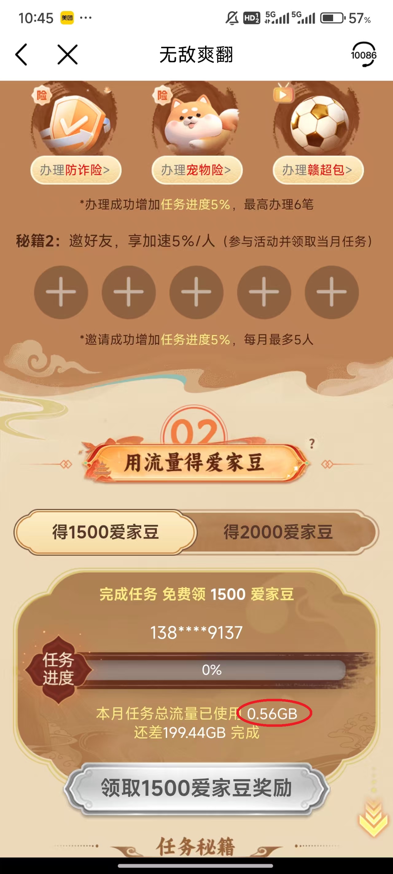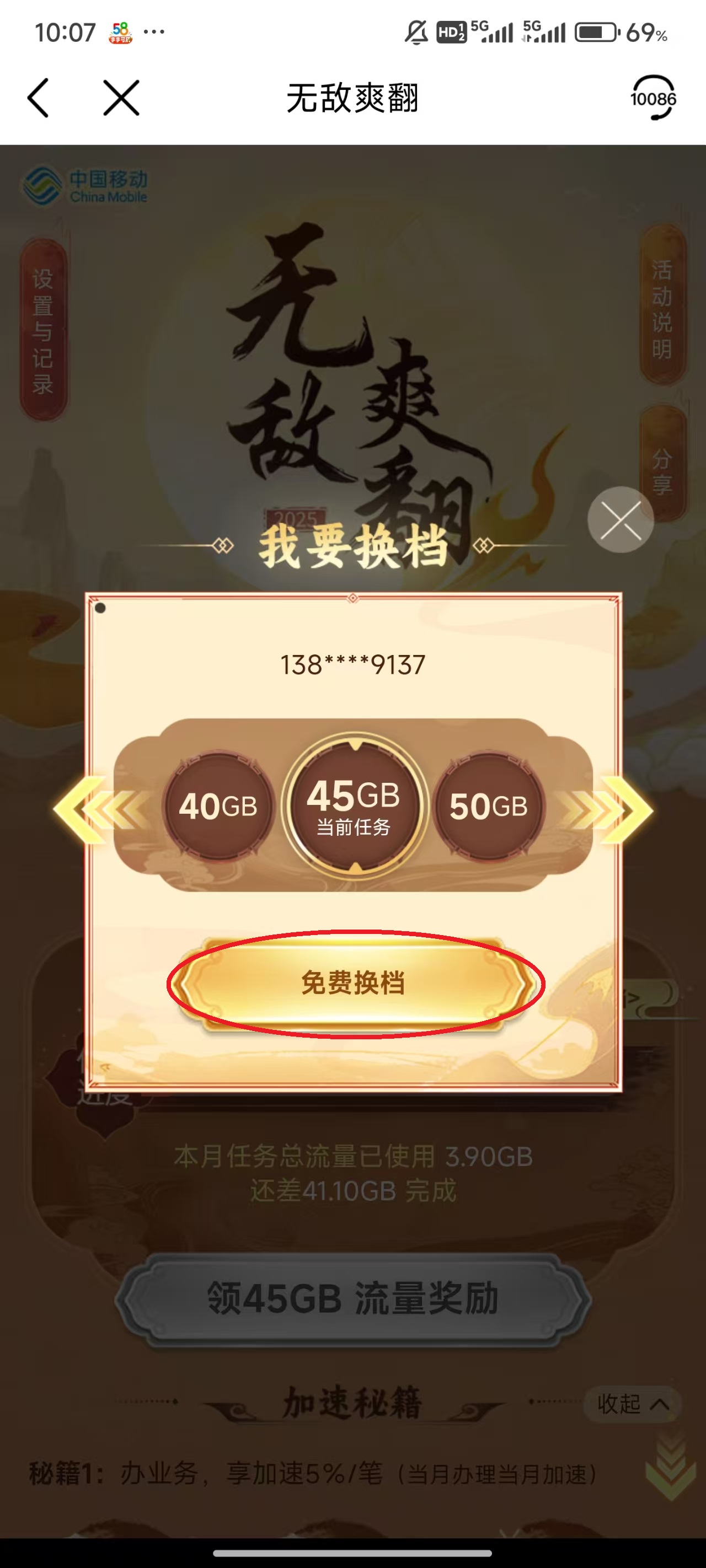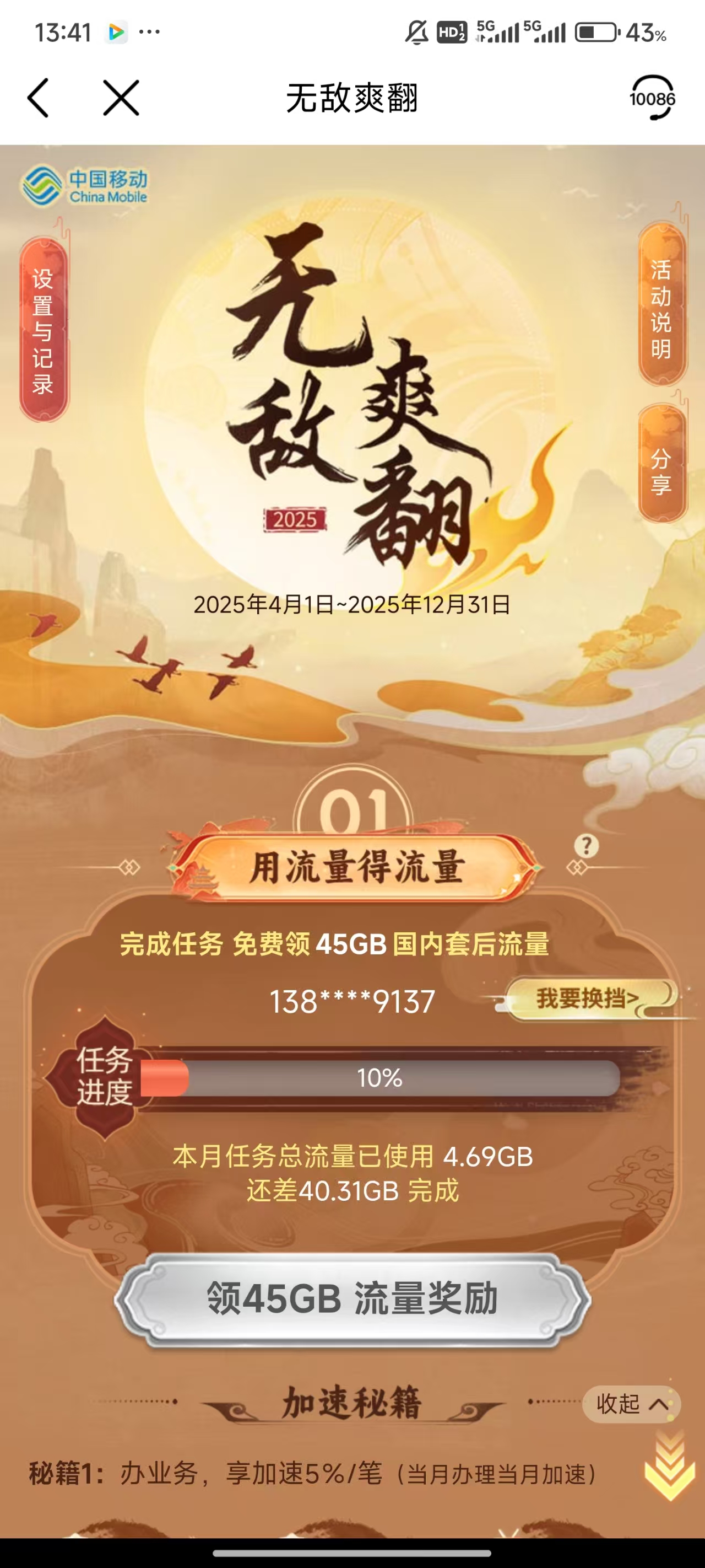 3、这里可以看到,目前处于45GB,如果想要得到这45GB,就需要消耗45GB,如果无法达到要求,也可以降低5GB要求,反之,觉得不够,也可以提升,自由选择,接下来就是如何消耗足够的流量。