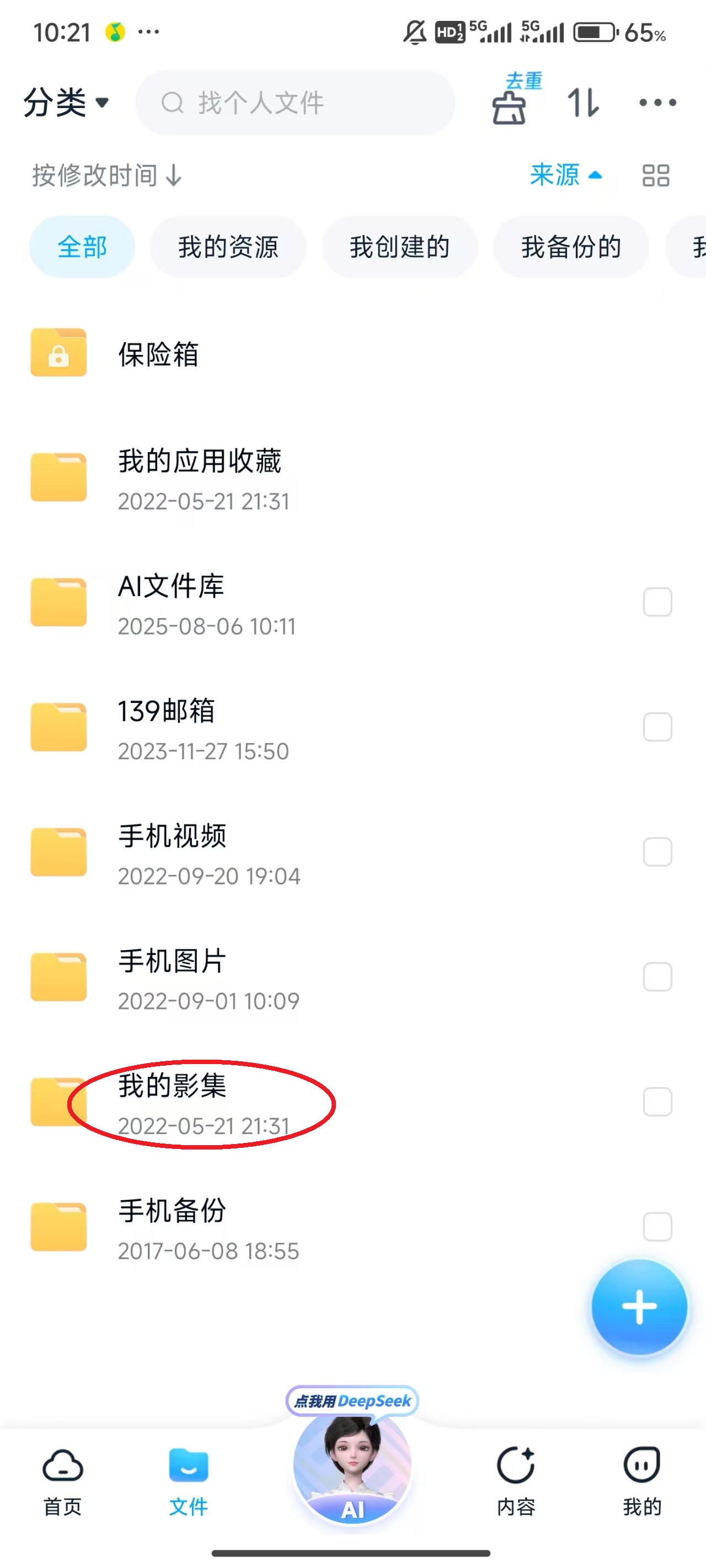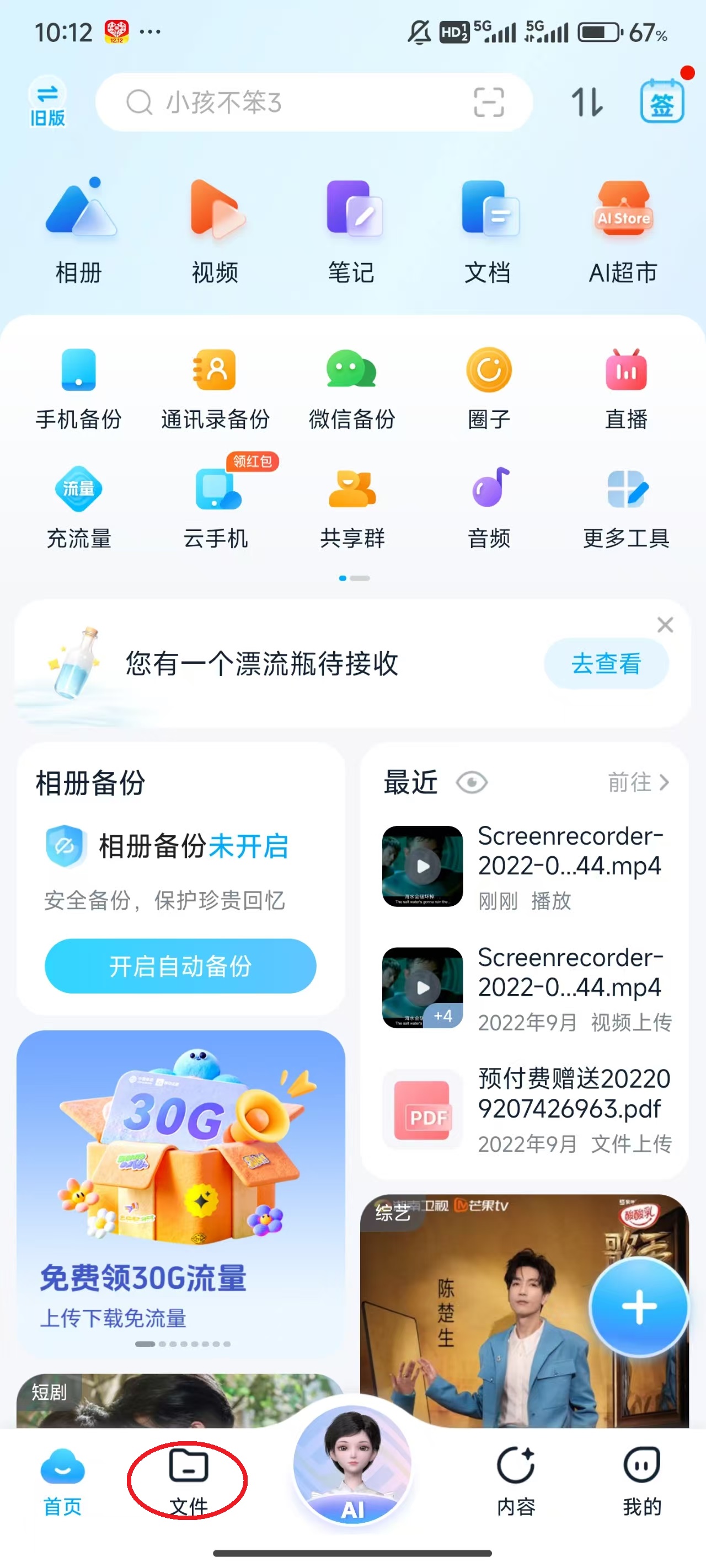 6、下载中国移动云盘,随后点击下方的“文件”。