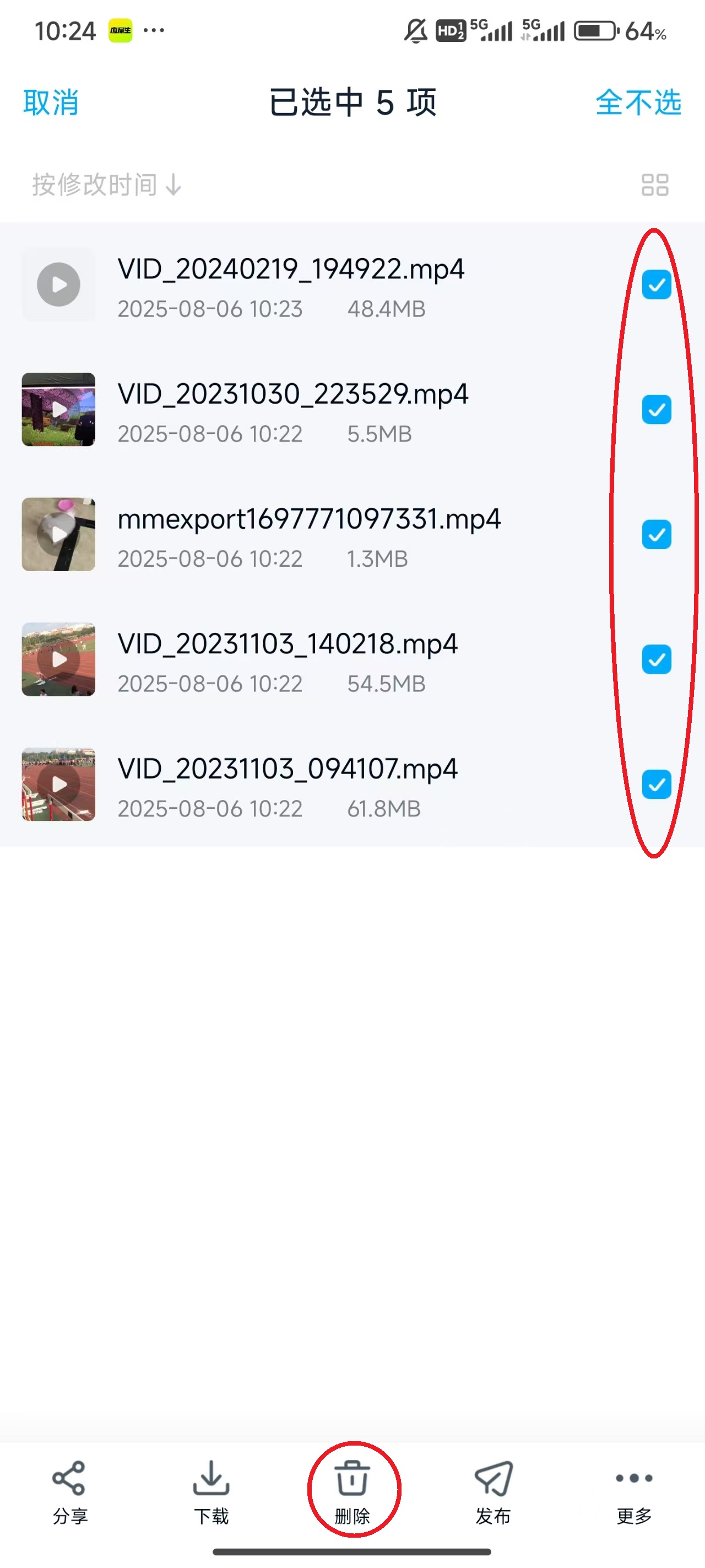 11、选择上传的文件,点击屏幕下方的“删除”。