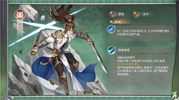 勇歌:金属性物理攻击型角色,来自云中门派,拥有高爆发的输出能力。