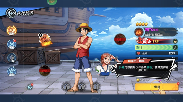 超神觉醒是一款以《海贼王》为背景的手机游戏。在游戏中,你将扮演一位船长,招募伙伴一起踏上冒险旅程。游戏设计了许多有趣的玩法,战斗画面和技能动作都严格按照原著来制作。