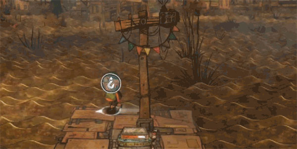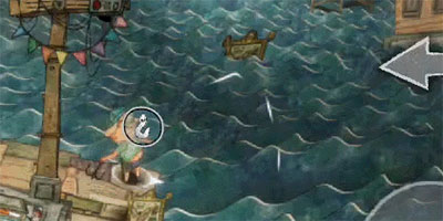 控制人物移动到木筏边缘,即可自动显示吊钩功能。
