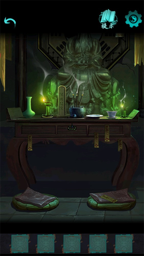 6、根据线索,将【符咒】放入火盆,拾取【茶壶】。