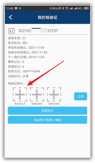 10、接着,返回到“我的驾驶证”页面,点击“上传”。