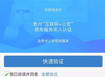 4、在进入实人认证界面,勾选【我已阅读并同意】,点击【快速认证】。